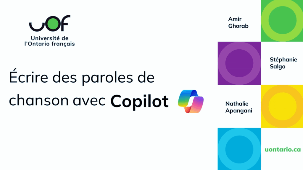 Ce projet de fin de session prend la forme d’un tutoriel interactif visant à initier les utilisateur·rice·s à l’usage de l’intelligence artificielle pour écrire des paroles de chansons. En s’appuyant sur l’outil Copilot, le tutoriel guide pas à pas les étapes de création, tout en insistant sur la nécessité de préserver une forme d’authenticité artistique. À travers des démonstrations concrètes, il montre comment formuler des demandes précises à l’IA pour générer des textes adaptés à différents styles musicaux, tout en s’inspirant d’artistes existants. Le projet met également en lumière les limites et les enjeux éthiques liés à l’utilisation de l’IA dans la création musicale. En articulant innovation technologique et expression personnelle, ce tutoriel propose une approche équilibrée et critique de l’écriture assistée par l’IA, destinée à enrichir le processus créatif sans le remplacer.