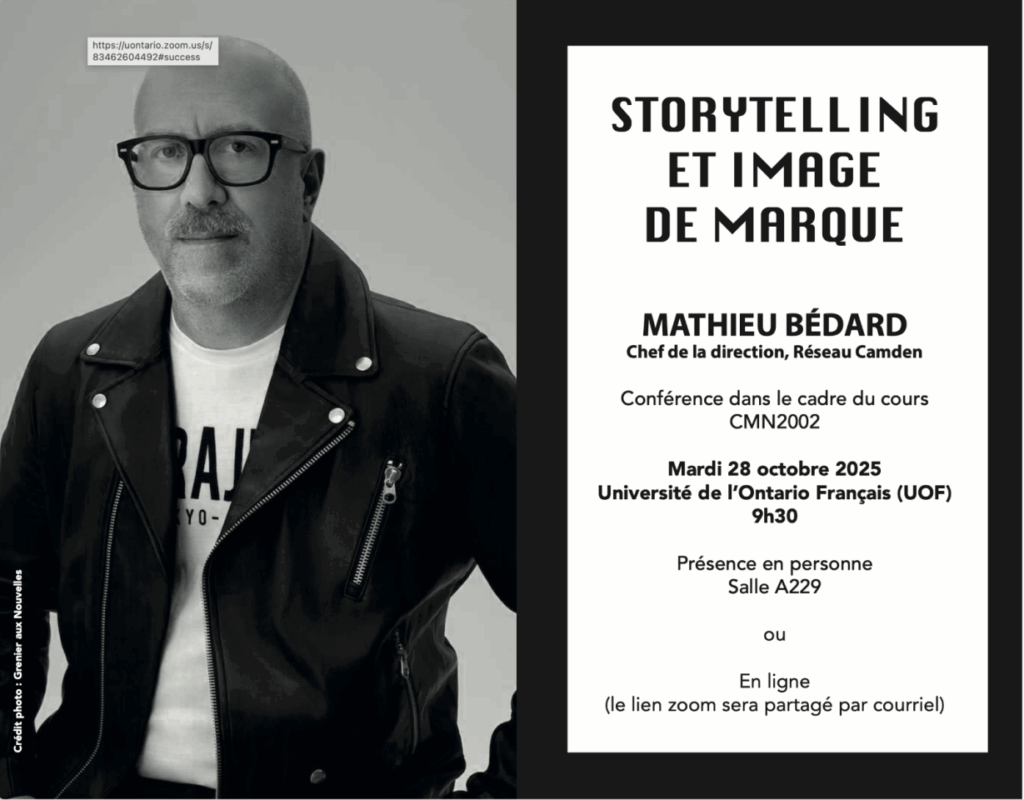 Dans le cadre du cours de 2ème année en communication et médias numériques de la professeure associée Rania Aoun, l’invité Mathieu Bédard, chef de la direction du Réseau Camden a présenté une conférence sur le storytelling et l’image de marque.