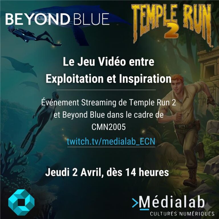 jeux opposées. Temple Run 2 vise à exploiter nos biais cognitifs pour nous rendre captifs de l’expérience de jeu, alors que Beyond Blue nous incite à mieux comprendre les espaces marins. Venez jouer et discuter avec Eliza De Vicky Mahoungou, Rith Stéphane Fotso Mouafo et Mégane Fotsing lors de l’événement à travers la page officielle Twitch du Médialab le 2 avril dès 14h.